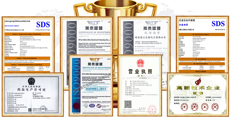 Xi'an Deli Biochemical Industry Co.,Ltd. ialahsebuah perusahaan berteknologi tinggi yang mengkhusus dalam penyelidikan & pembangunan, pengeluaran & penjualan siklodekstrin dan derivatifnya. Sejak penubuhannya pada 27 Ogos 1999, syarikat itu telah mematuhi Dasar kualiti "memberi tumpuan kepada aksesori, kualiti pertama, perkhidmatan yang ikhlas, berusaha untuk kelas pertama". Selepas lebih daripada 20 tahun kerja keras dan pembangunan, syarikat pada masa ini mempunyai produk DELI Jenama Hydroxypropyl Betadex, DELI Jenama Betadex Sulfobutyl Ether Sodium. Produk di atas telah didaftarkan dan difailkan dengan FDA.