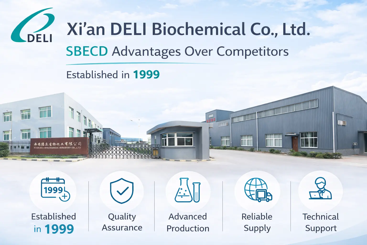 DELI Biokimia ialah salah satu syarikat terbesar yang menghasilkan Betadex Sulfobutyl Ether Sodium. Mereka membuat bahan gred suntikan yang memenuhi piawaian perubatan yang paling ketat. Kami adalah rakan kongsi terbaik untuk membangunkan ubat baharu kerana kami mementingkan kualiti, kebolehpercayaan dan kepuasan pelanggan. Anda boleh mendapatkan kelebihan DELI melalui bantuan teknikal penuh kami dan kebolehpercayaan bekalan yang terjamin. Hubungi kami di xadl@xadl.com untuk membincangkan keperluan formulasi khusus anda.